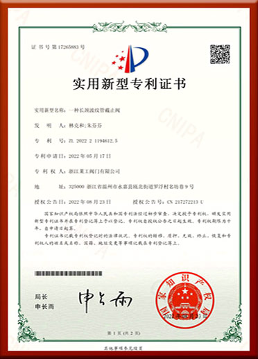 萊(lái)工閥門通(tōng)過了浙(zhè)江(jiāng)省科技型中小企業認證,做為專業的波紋管閥門生產商,我們同時獲得了多項專利(lì)認證,包括“一種氯用波紋管截止閥(fá)”,“一(yī)種長頸(jǐng)波紋管截止閥”等專利認(rèn)證。公司目前員工及中高級職稱人員30餘人。